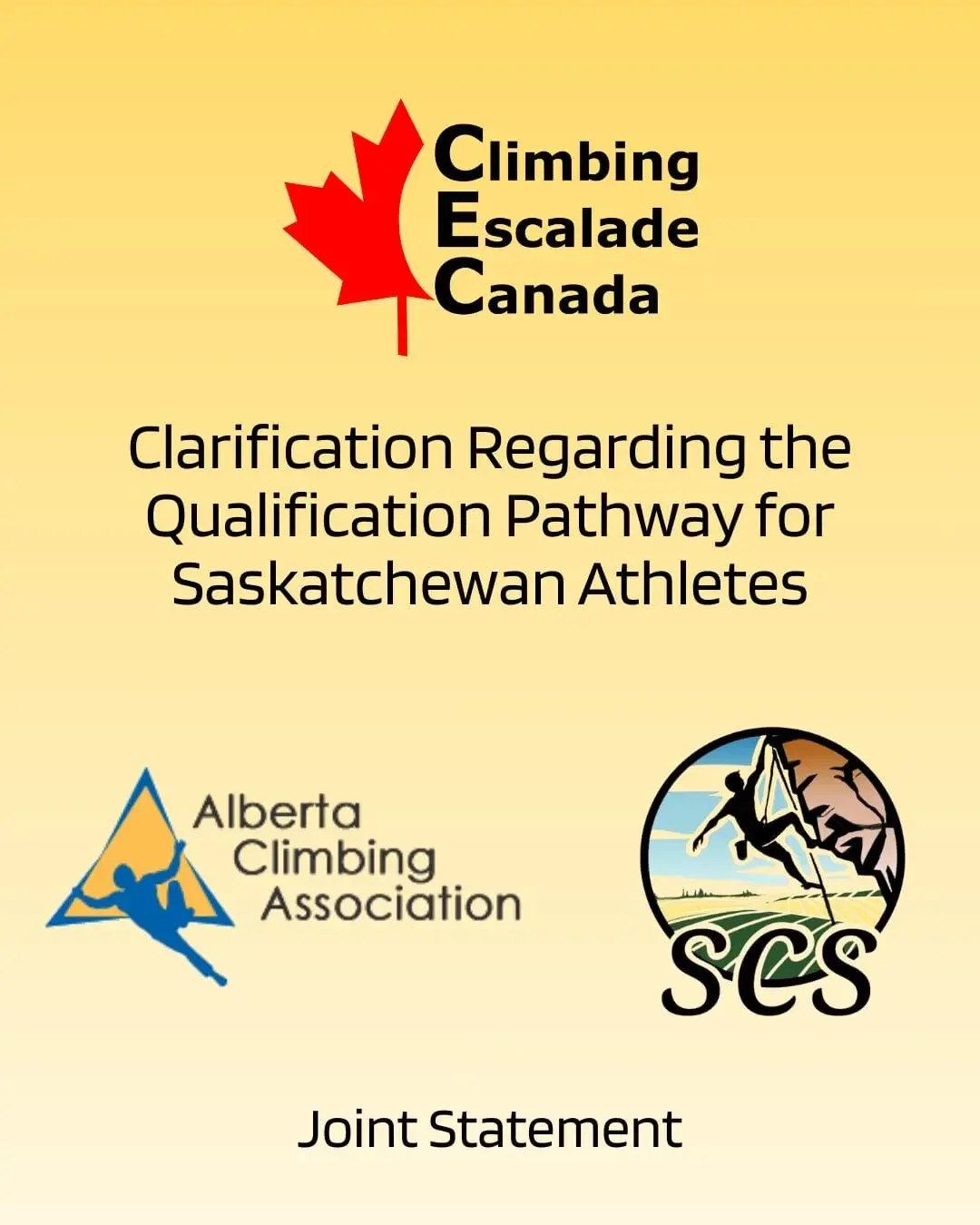 Sport Climbing Saskatchewan (SCS) and Climbing Escalade Canada (CEC) wish to clarify the qualification pathway for athletes residing in Saskatchewan.